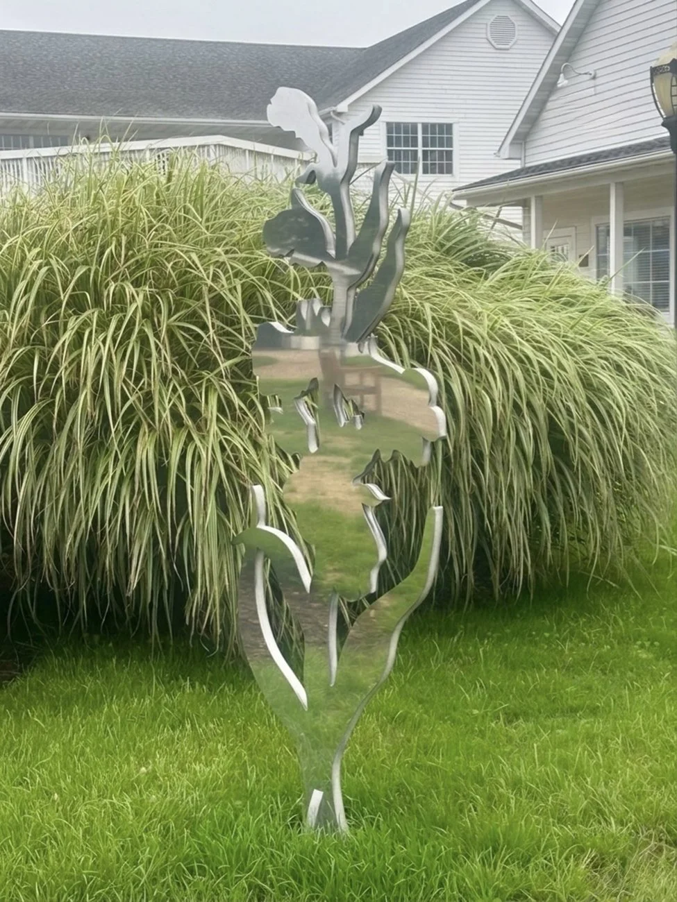 Blooming Reflection – Northern Blue Flag, Polished stainless steel, 19 ½” X 1 X 71”, 2024, Edition of 3 +AP